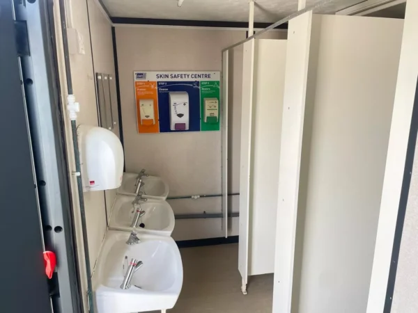 20ft anti vandal container  – used 3 plus 1 toilet block male has 3 cubicle wash basins and urinals